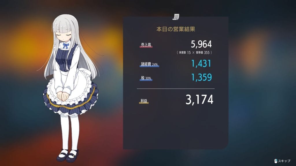 酒場の営業は開発した料理やリリーのステータスに従い、オートで進むので特にやることはない