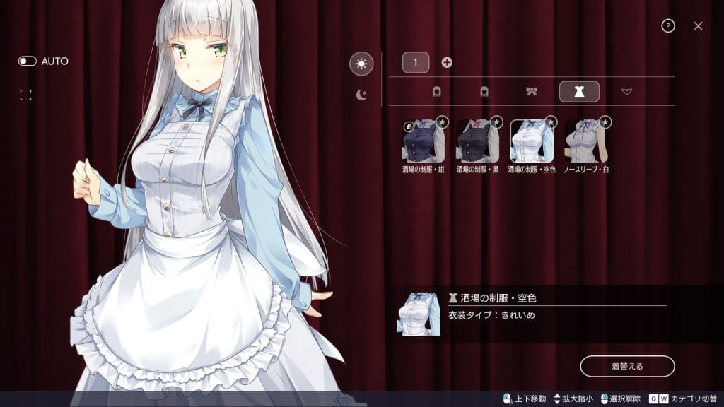 着せ替え衣装の数は多いのでチャプターごとに着せ替えても良いし、ゲームを起動することに着せ替えるのもあり