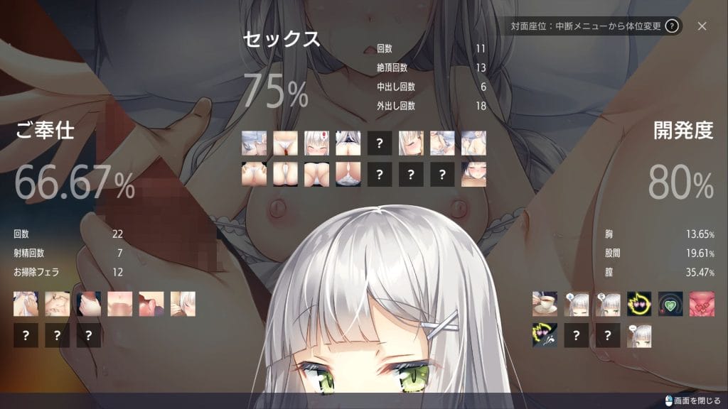 基本はアチーブ条件を見れば、すぐに新しいエロが見れるんだけど、
