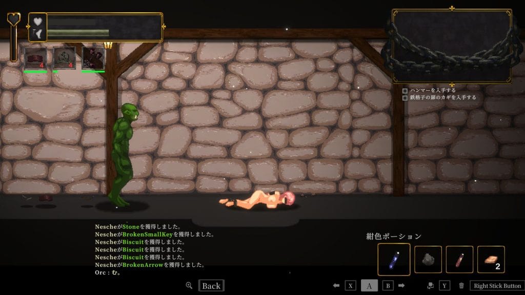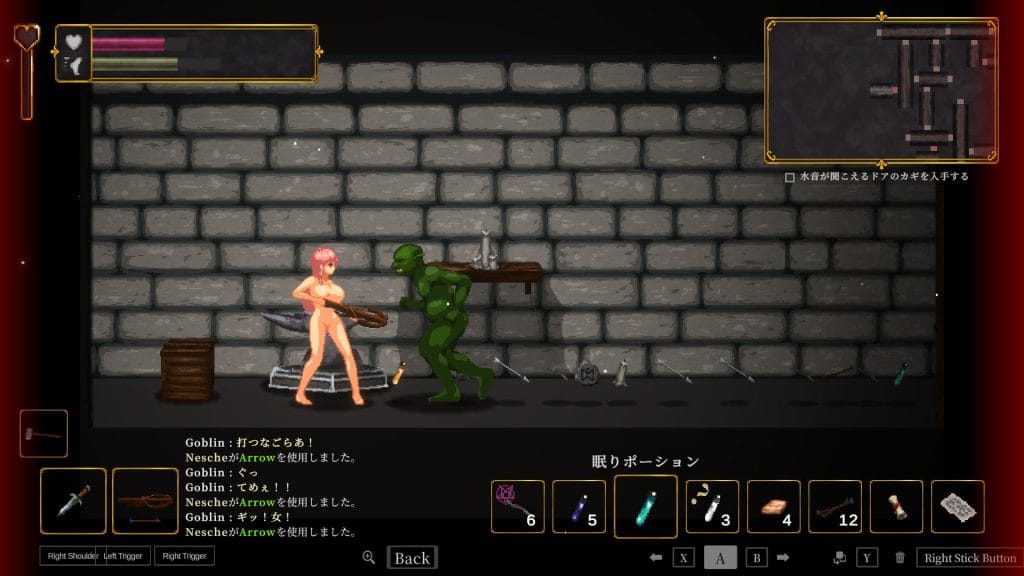 RS:アイテム捨て(RS連打で拘束着も脱げる)