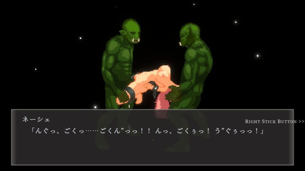 一回捕まると逃れるすべはほぼなく、オークの気の向くままに連れ回されて犯されるのを永遠に見るしかなくなる