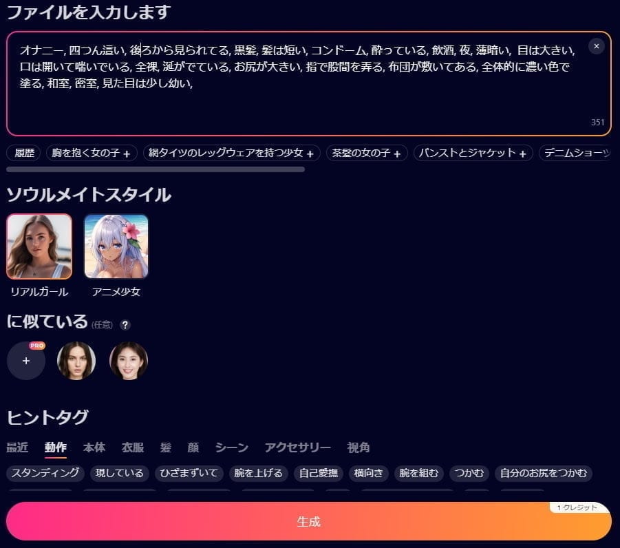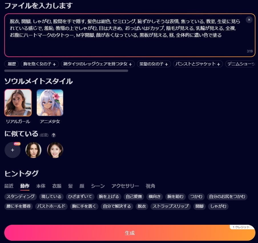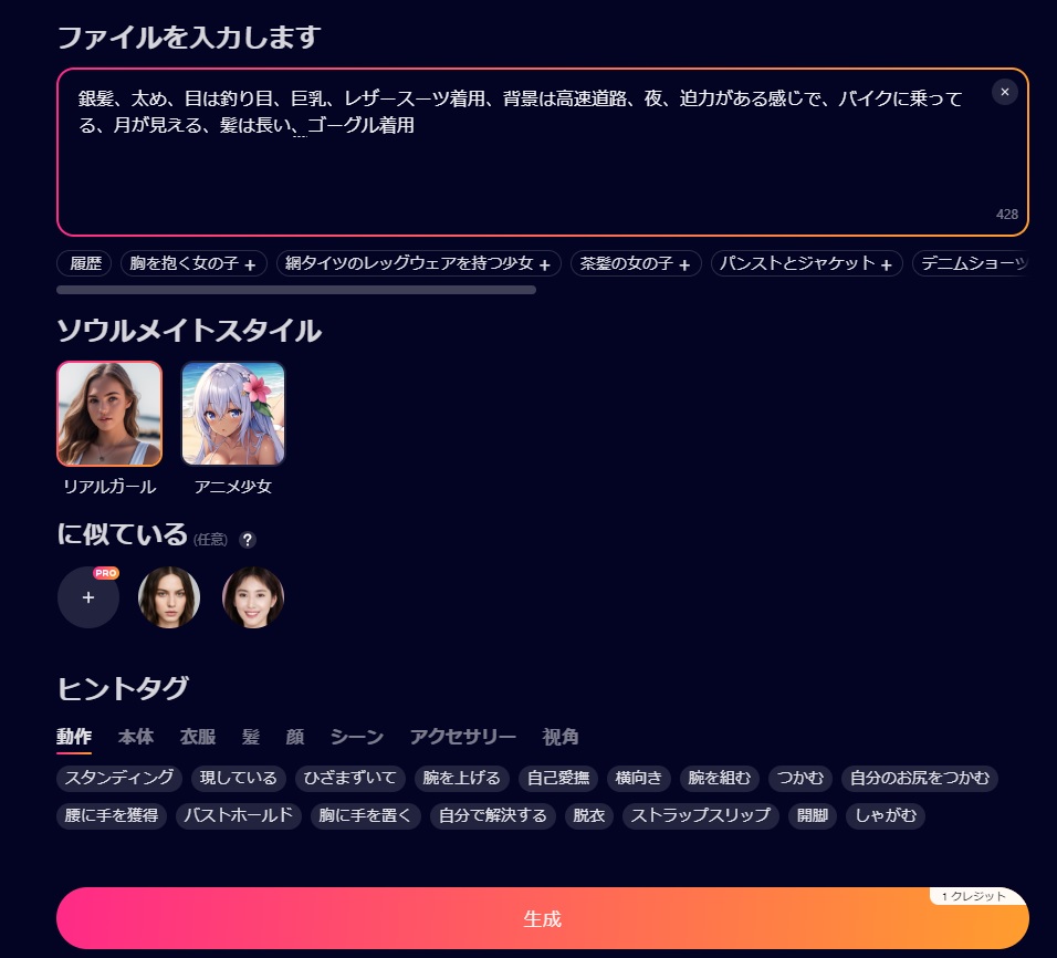 今回は海外サイトSoulGen AIアートジェネレーターで女の子を作ってみる。