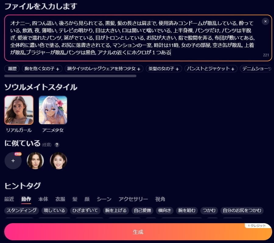 プロンプトは500文字まで入力できるのは有難いが、そんなに指定ワードがでてこないのが現状。