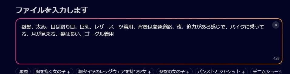 『ファイルを入力します』の欄に、思いつくままプロンプトを入力する。