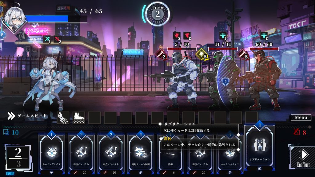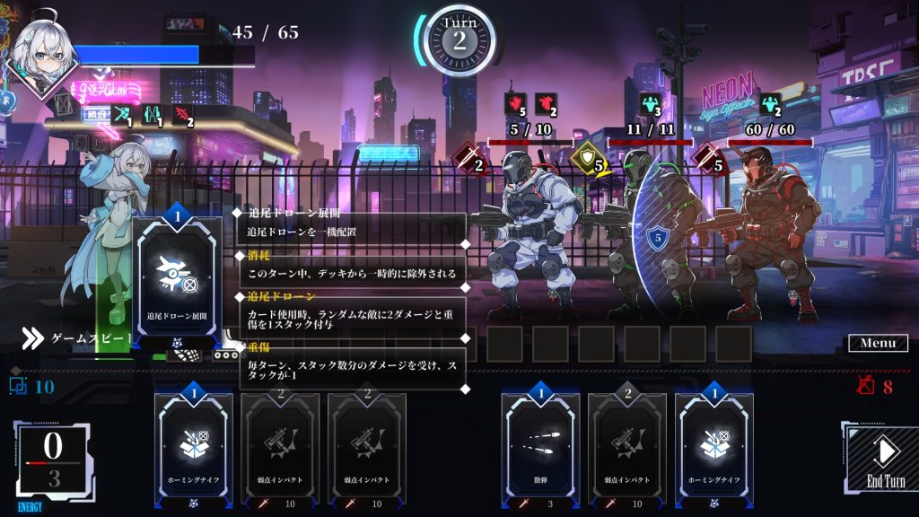 ドローン展開中はカードを使う度に、ドローンが敵を攻撃してくれる。