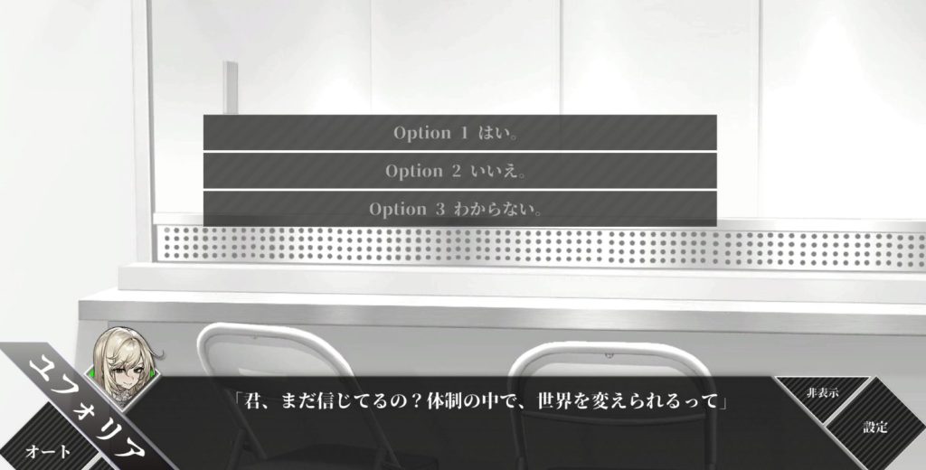 選択肢でリベレーターズ寄りの選択肢を選んでいくと自由値が高くなり「Perfectエンド」となる。