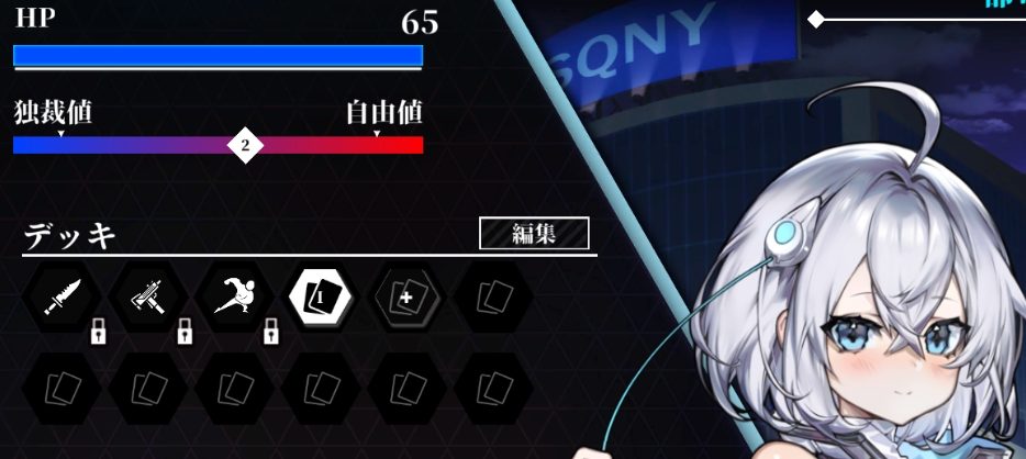 ルナの自由値が高いと「Perfect」、独裁値が高いと「Sad」、中間だと「Normal」のエンドに到達する。