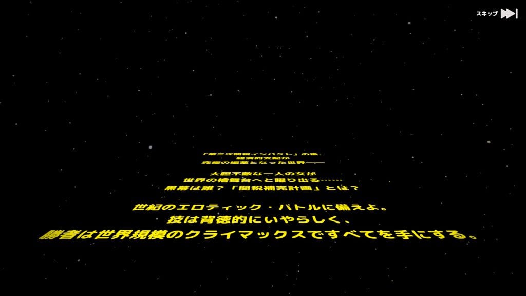 角度が気になってオープニングクロールの内容が頭に入ってこないワナ。