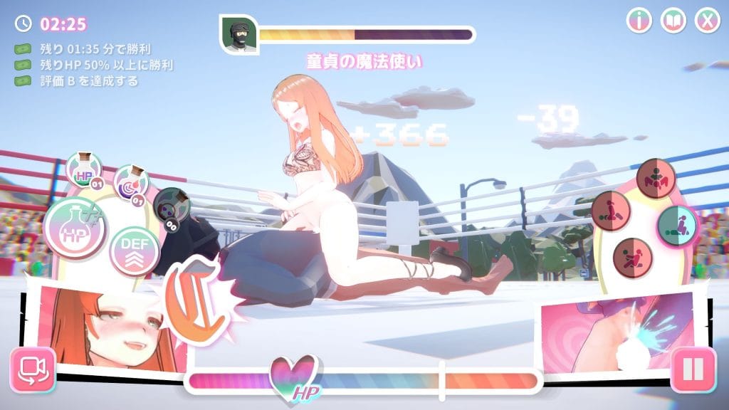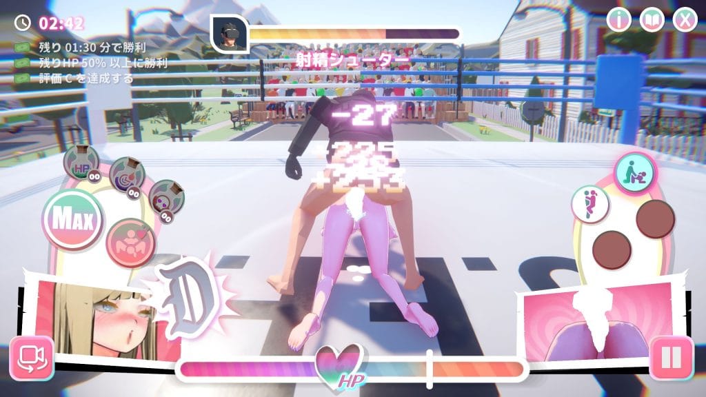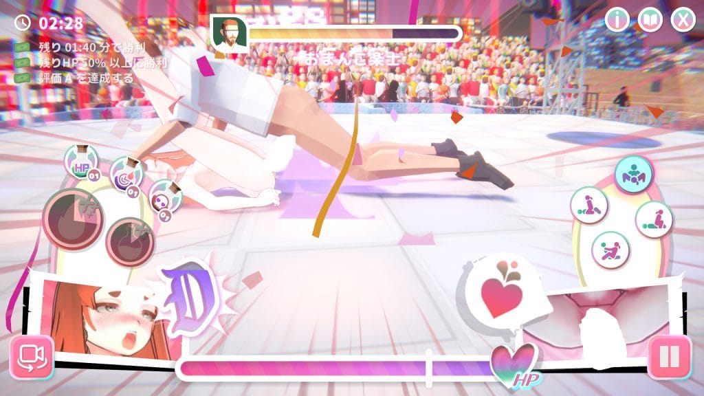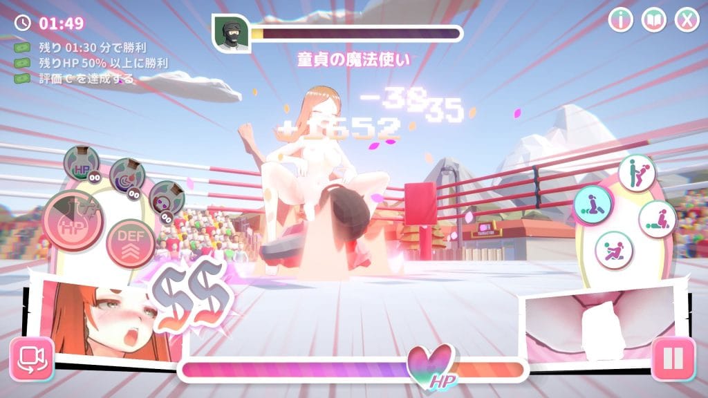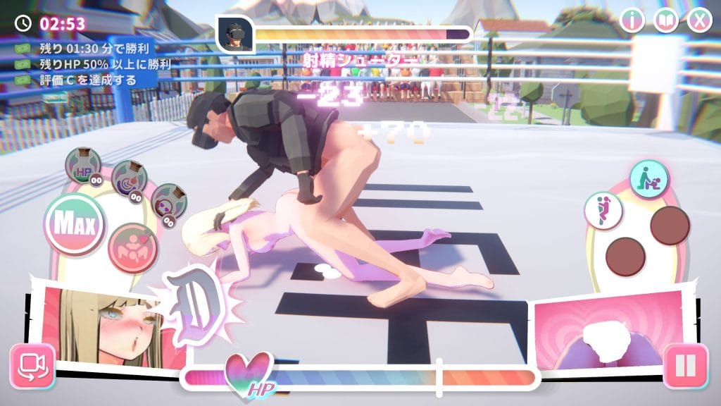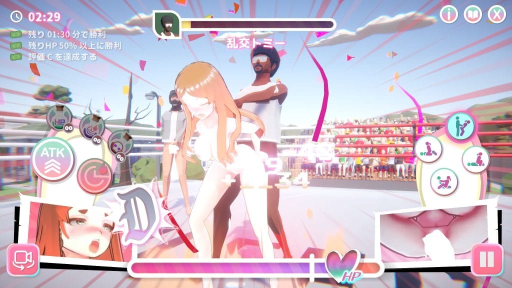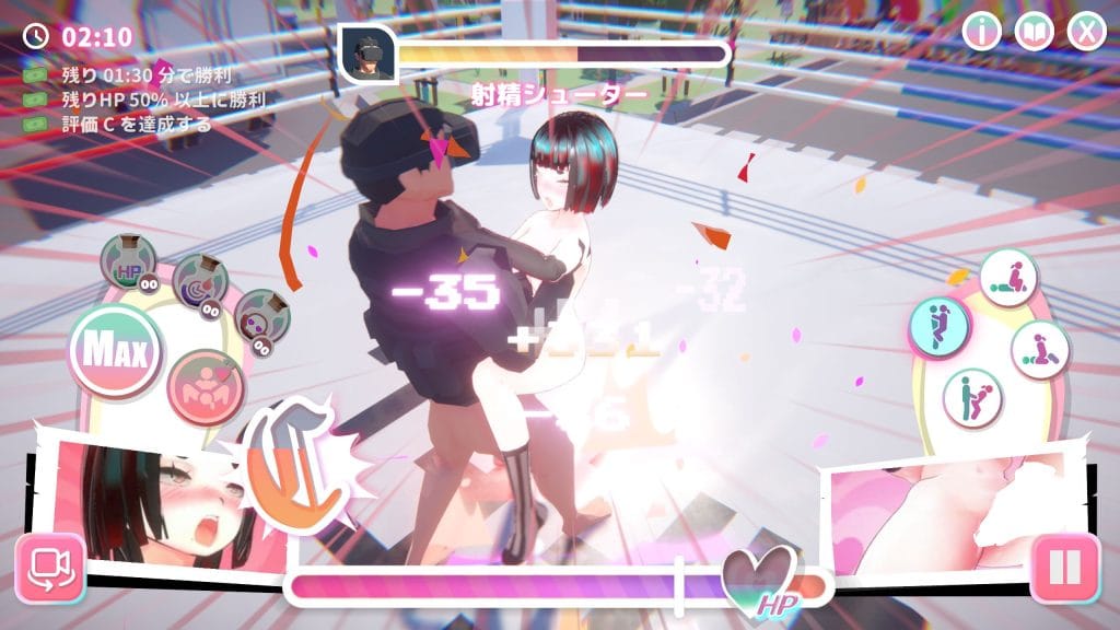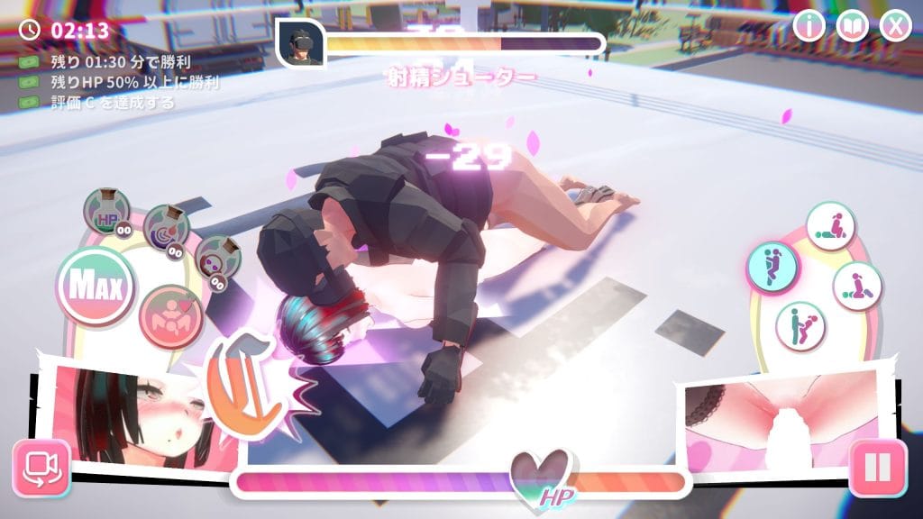 画面下部のハートをバーより右に押し込むと、体位が変わってより多くの快感ダメージが与えられる。