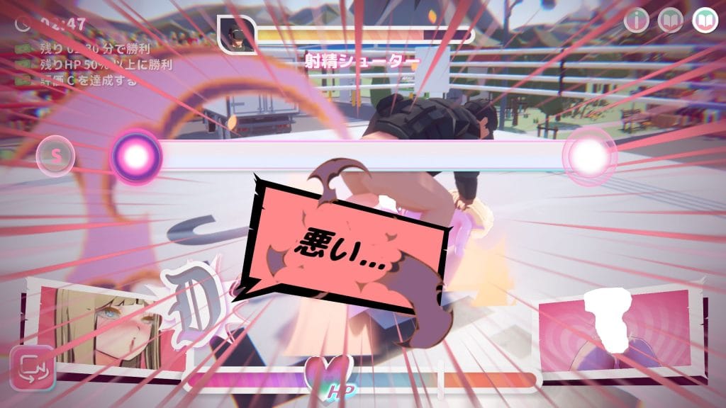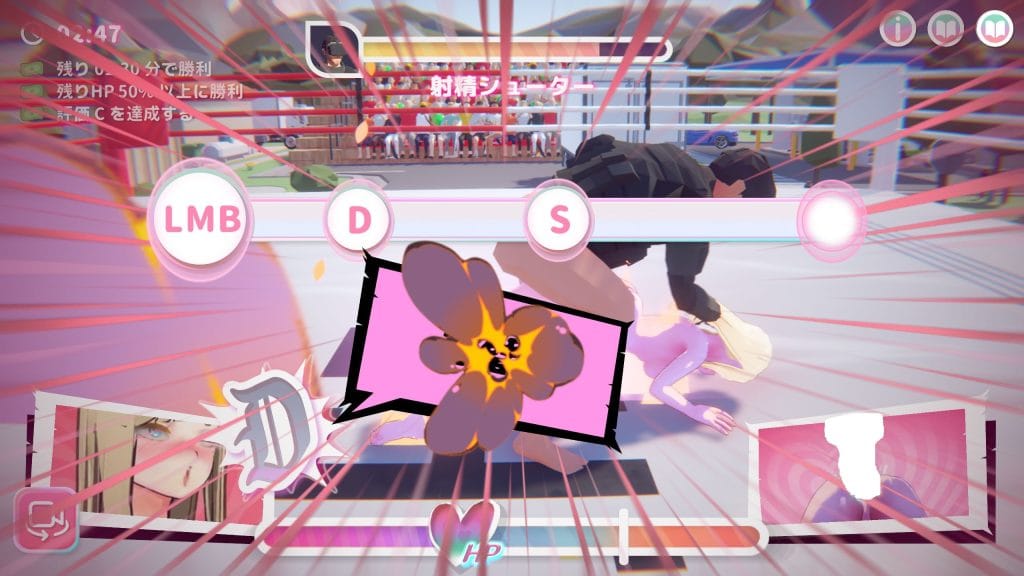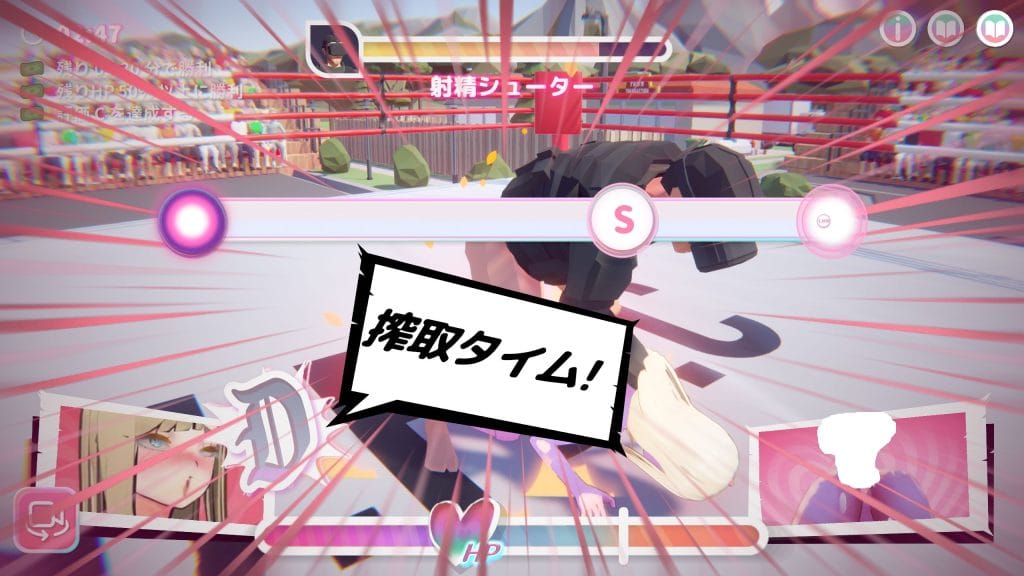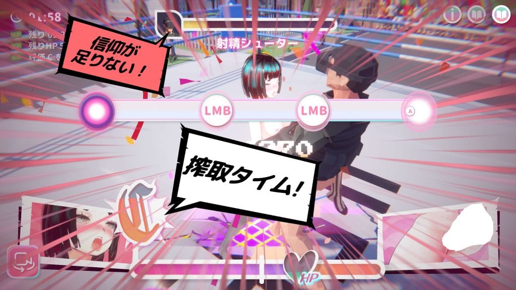 はい、たぶんこれは、タイミングよくキーを押して相手に快感ダメージを与える的なヤツですね。