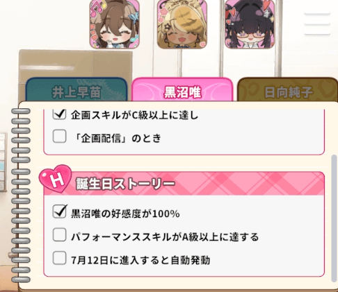 VTuberは好感度を上げていくとイベントが解放される。