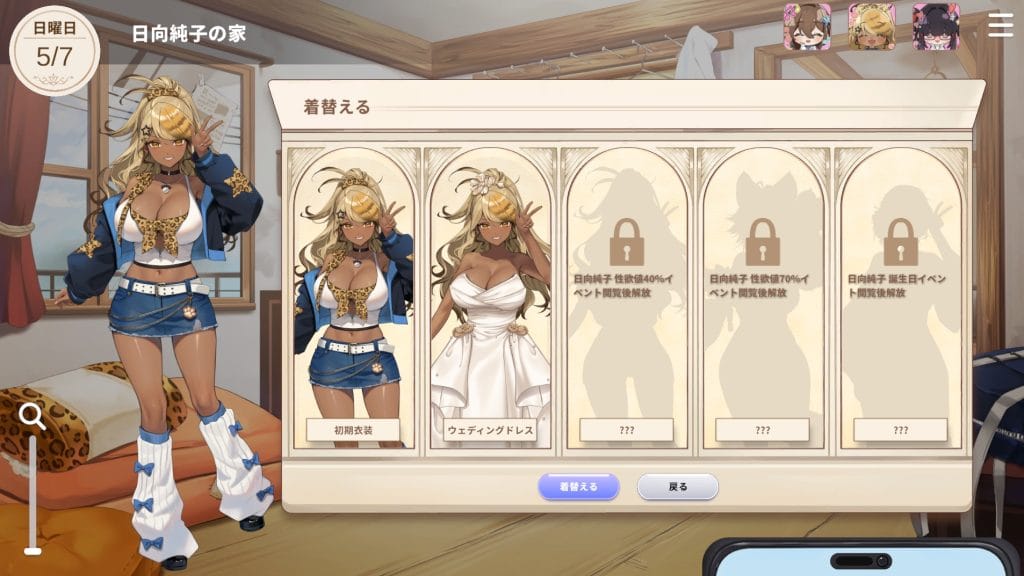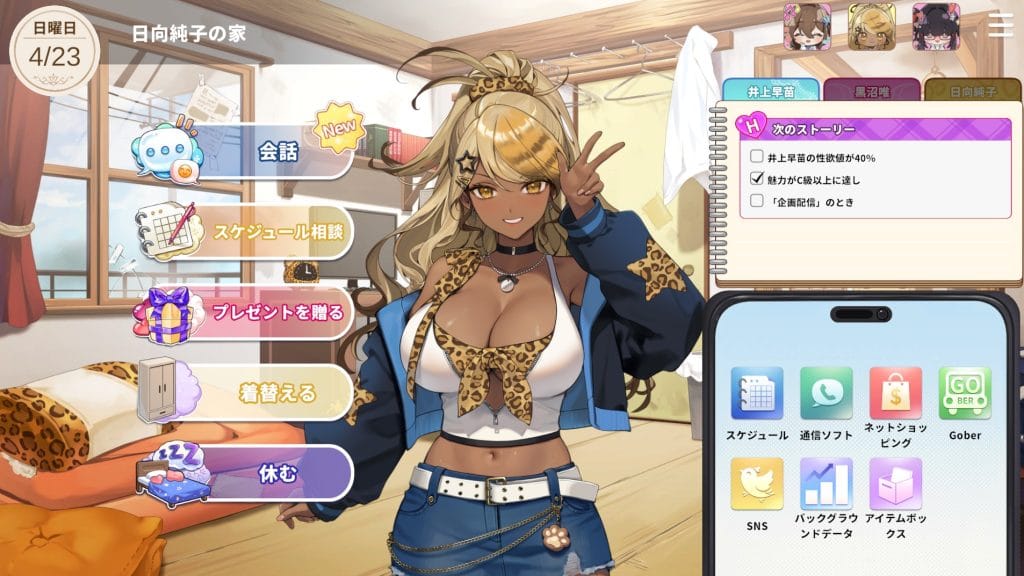 家を訪問するとスケジュール作成以外に、プレゼント送ったり着替えをさせたりもできる。