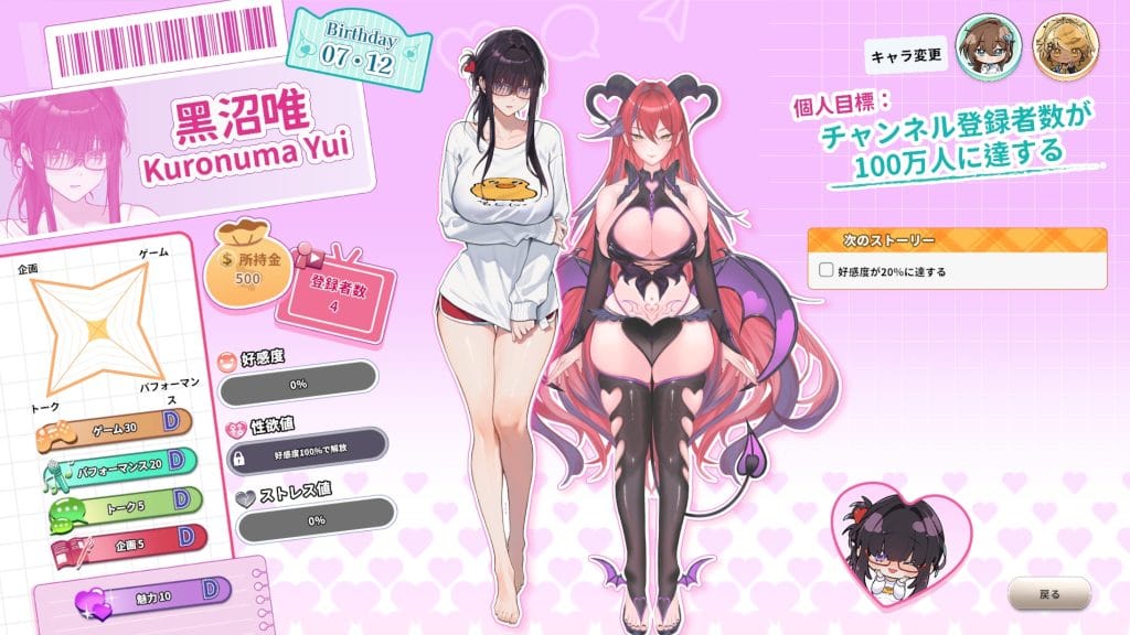 ゲーム前半はステータスアップよりも、好感度上げと登録者数増加を目指す。