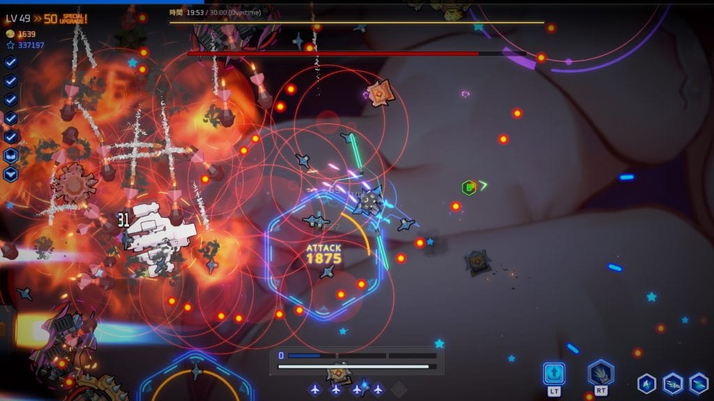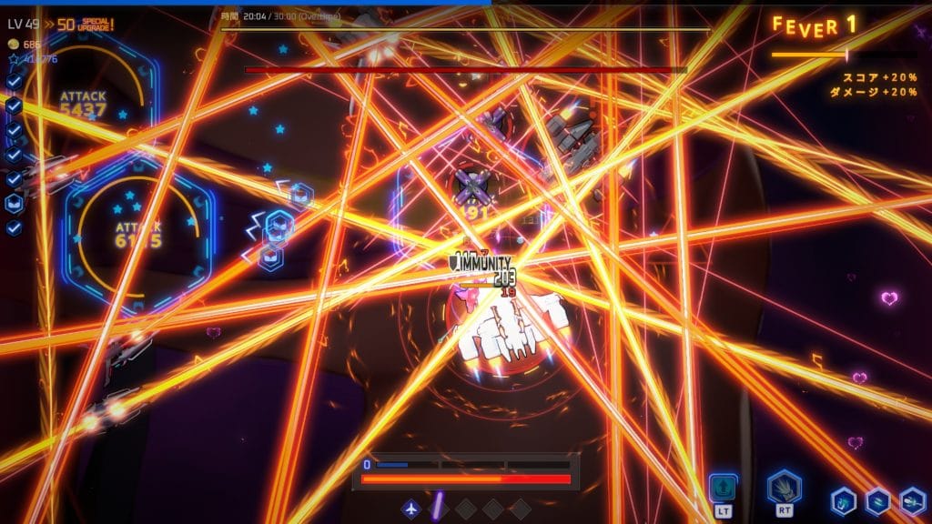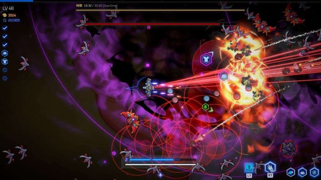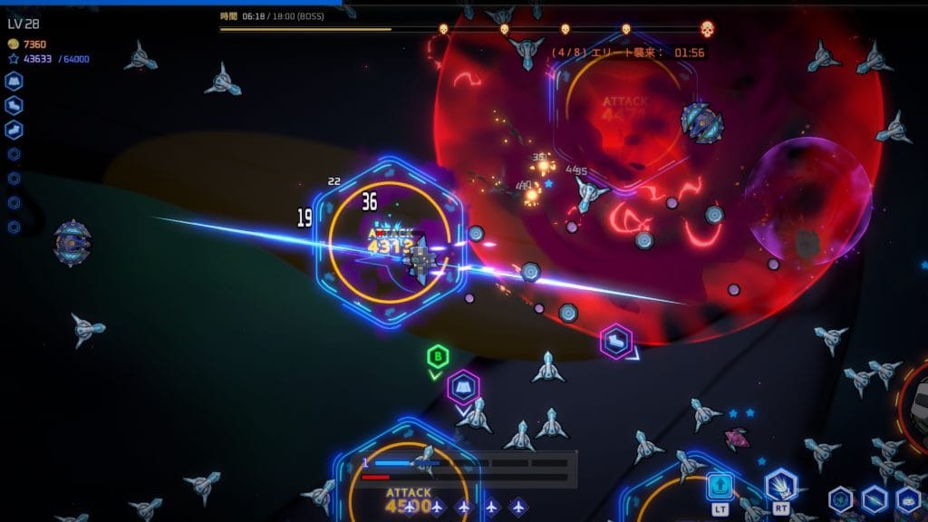 敵を倒して自機を強化して30分間生き残り、最後にボスを倒す流れとなる。